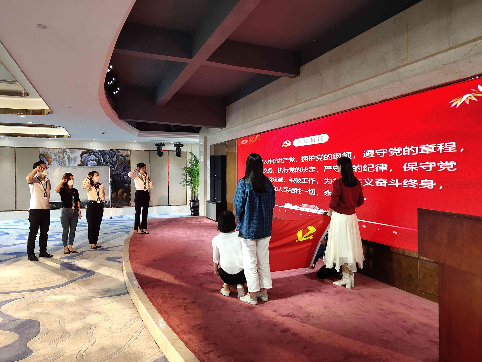 为进一步深化党员身份意识和责任意识,加强党员党性教育,激发党员和群众职工战斗力,发挥先锋模范作用,4月21日下午,jinnianhui今年会党委在深圳总部基地11楼发布厅组织开展了简洁庄重的“过政治生日 忆入党初心”党员政治生日活动。第一、第二季度政治生日党员、2021年下半年新吸收预备党员、党委领导及入党积极分子代表参加了此次活动。